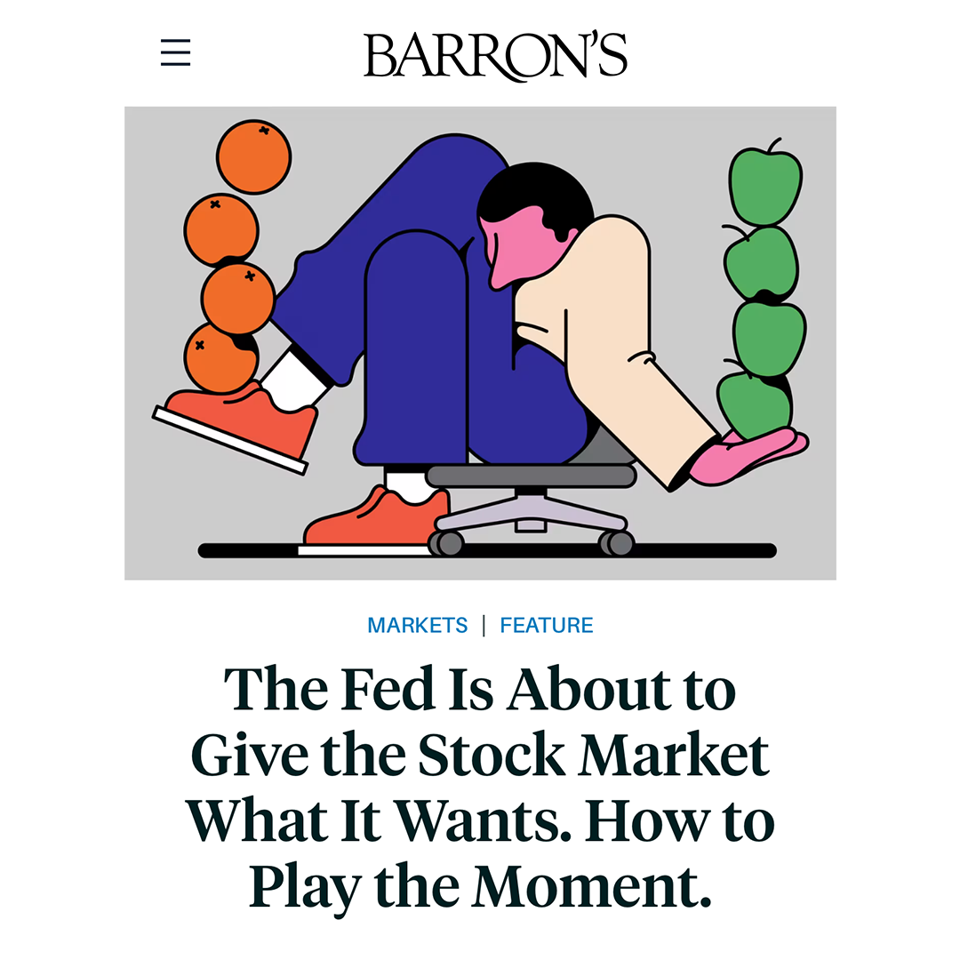 Illustration for Barron's magazine, for a feature recommending investors to diversify and balance risk in their portfolios in light of Fed cuts.